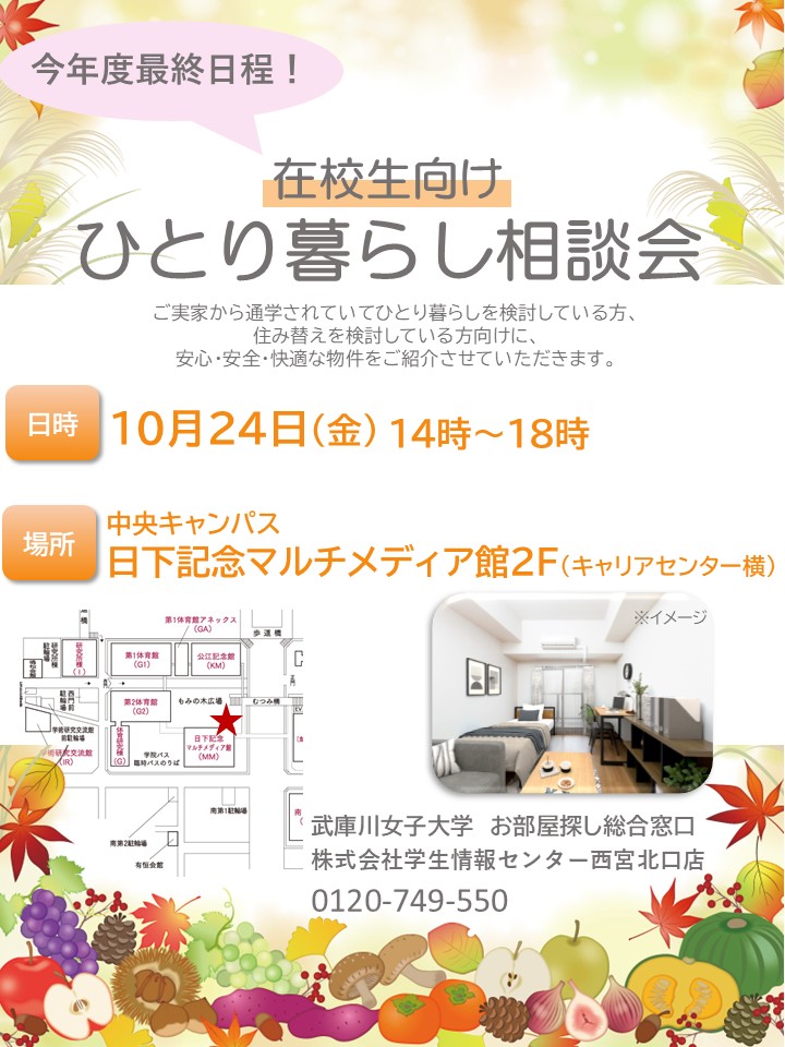 - 2025.10.21 【■今年度最終日程!在校生向け一人暮らし相談会のお知らせ■】