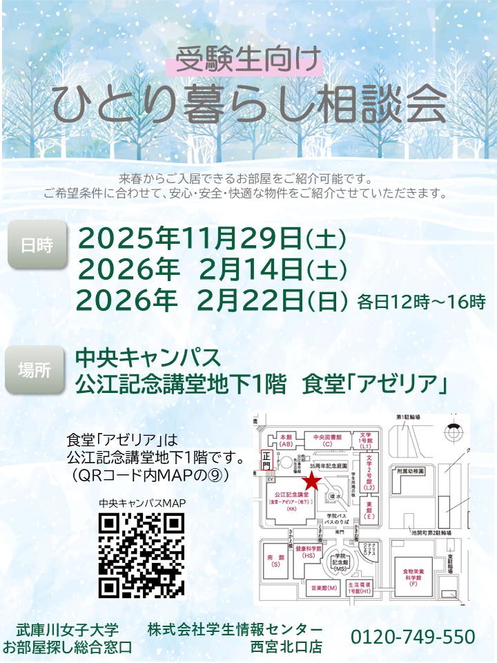 武庫川女子大学下宿相談総合窓口の株式会社学生情報センターです。