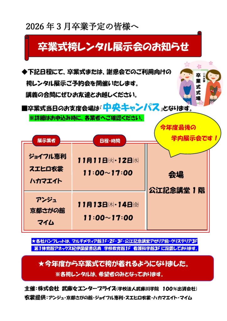 クレジットカード、現金支払いには対応できませんのでご注意ください。 - 2025.09.26 【『今期最終!!』レンタル袴学内相談会のお知らせ】